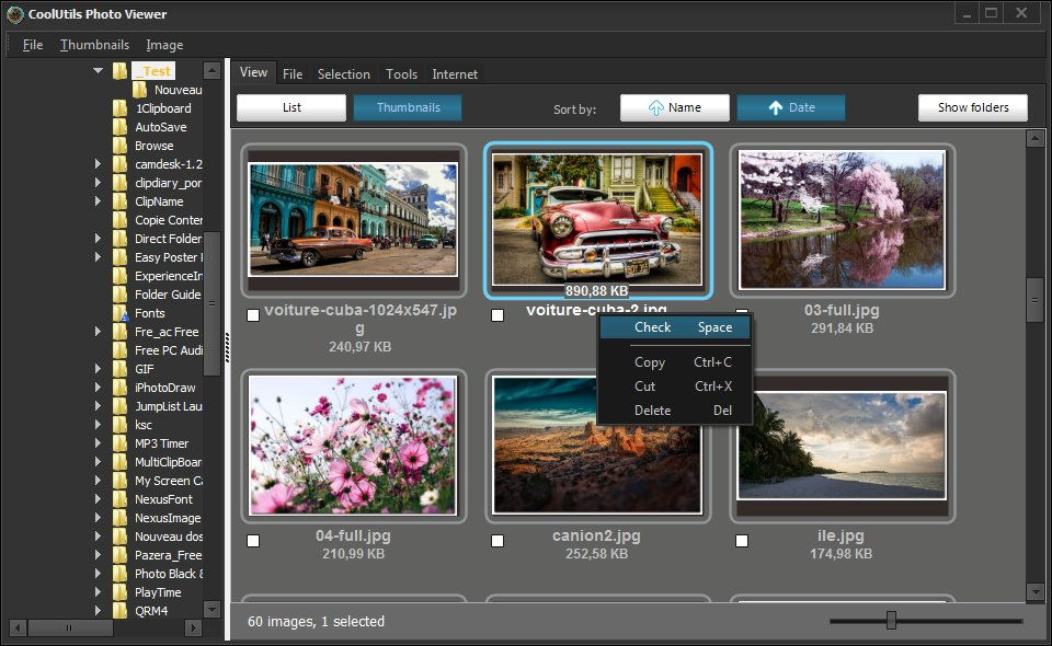 Supprimez les mauvais clichés tout de suite, copiez les bons dans les bons dossiers, donnez de nouveaux noms descriptifs au lieu de terne IMG_456.JPG, redimensionnez et faites pivoter vos photos avec Coolutils Photo Viewer. C'est absolument gratuit, pas de barre d'outils, pas de mise à niveau payante, pas de publicité. Essayez-le maintenant !"