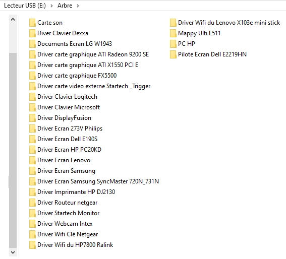 * ligne de commande : xcopy G:\DRIVERS E:\Z\Arbre /t /e